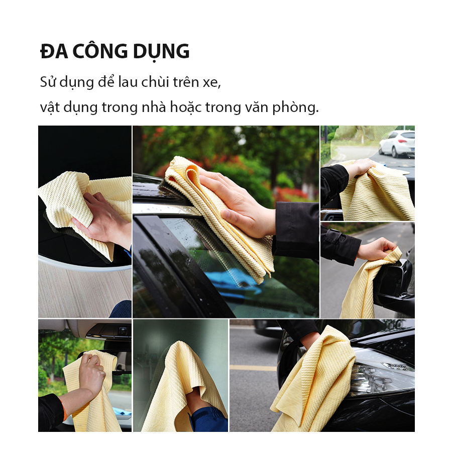- Sở hữu một khăn lau với khả năng thấm hút tốt, không gây trầy xước bề mặt giúp lau sạch vết bẩn trên xe, hay không gian nhà ở.