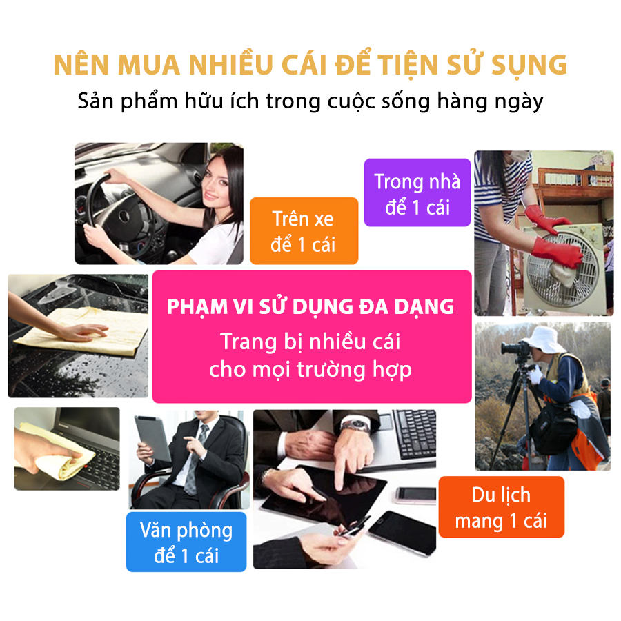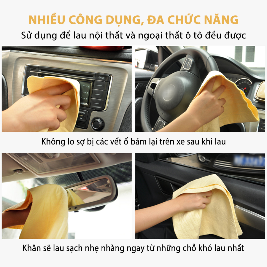 - Sở hữu một khăn lau với khả năng thấm hút tốt, không gây trầy xước bề mặt giúp lau sạch vết bẩn trên xe, hay không gian nhà ở.