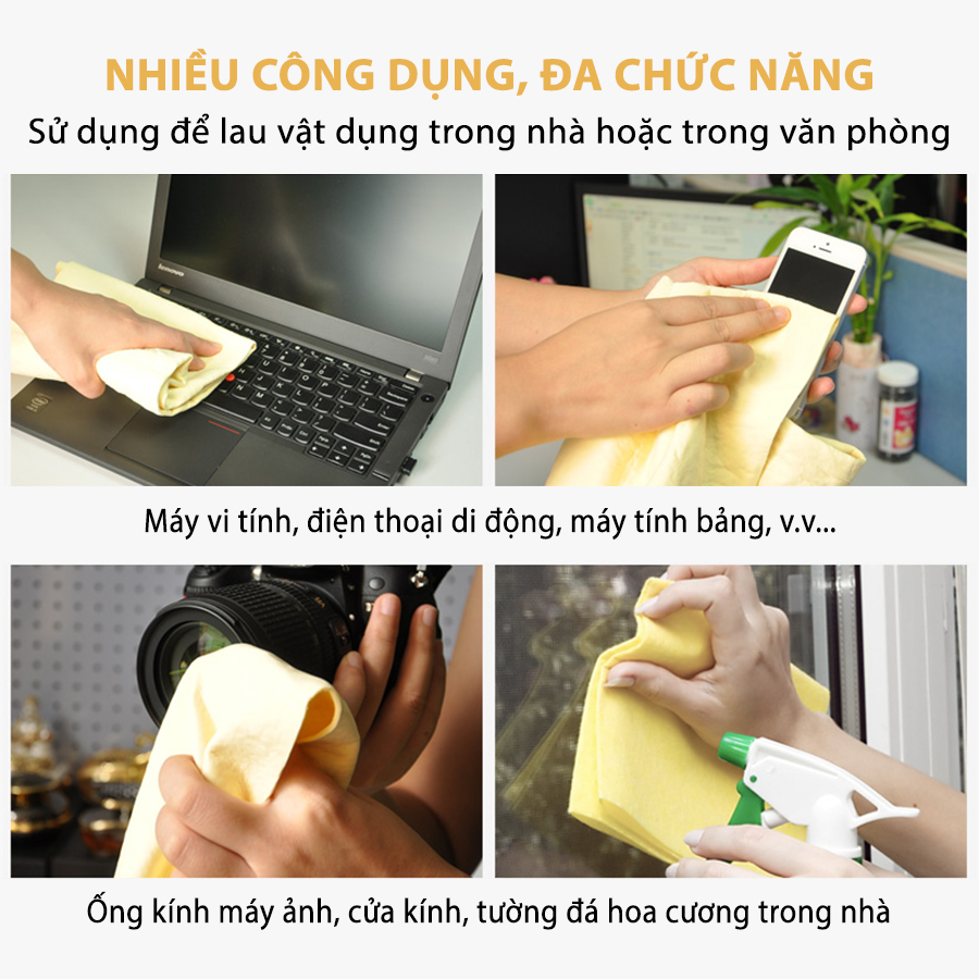 - Sản phẩm mang đến những trải nghiệm hoàn toàn khác biệt dành cho người dùng hoàn toàn không làm trầy xước khi lau, thấm hút tốt gấp 10 lần khăn thông thường, làm sạch nhanh vết bẩn, không để lại bụi vải và vết mờ sau khi lau.