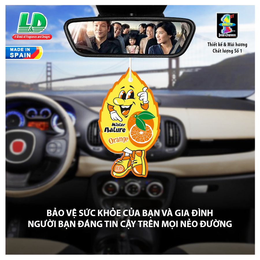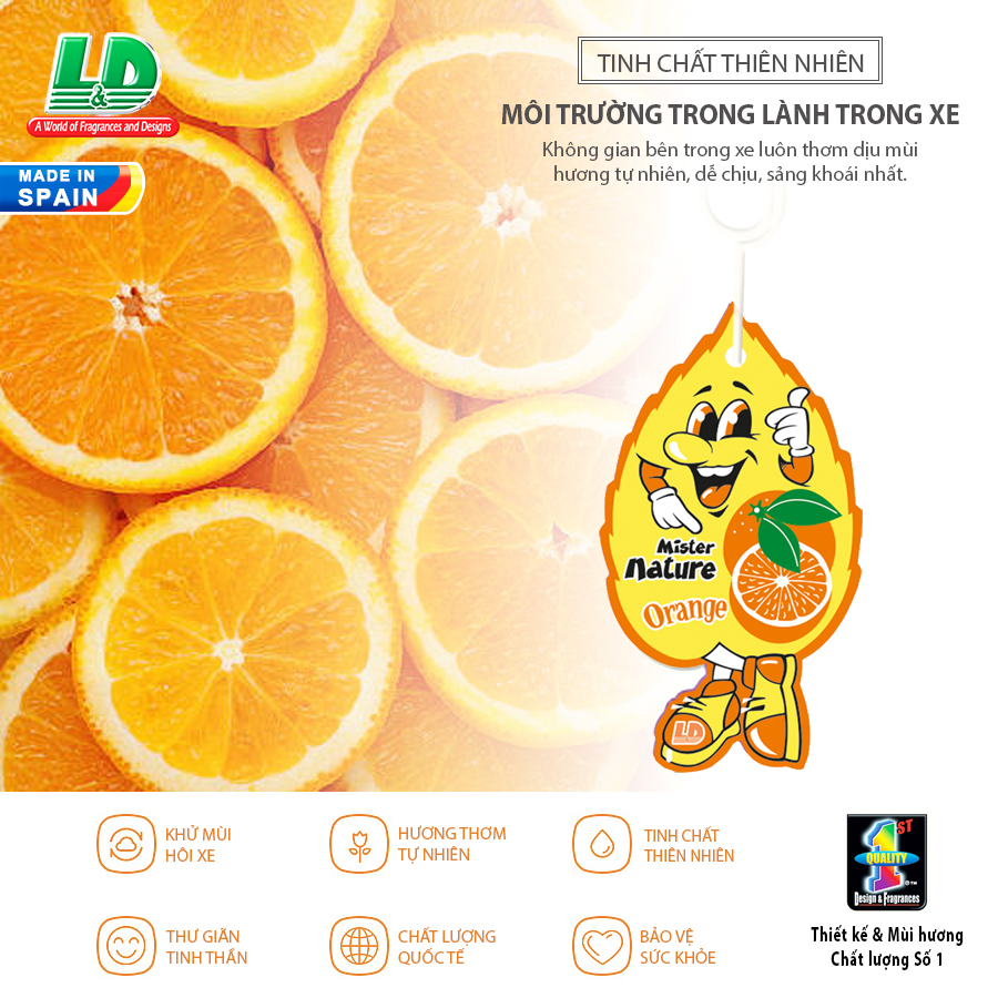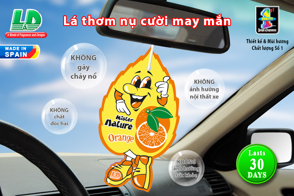 - Lá thơm nụ cười may mắn L&D MISTER NATURE Orange với hương cam nhẹ nhàng giúp tạo cảm giác thoải mái khi ngồi trong xe hơi.
