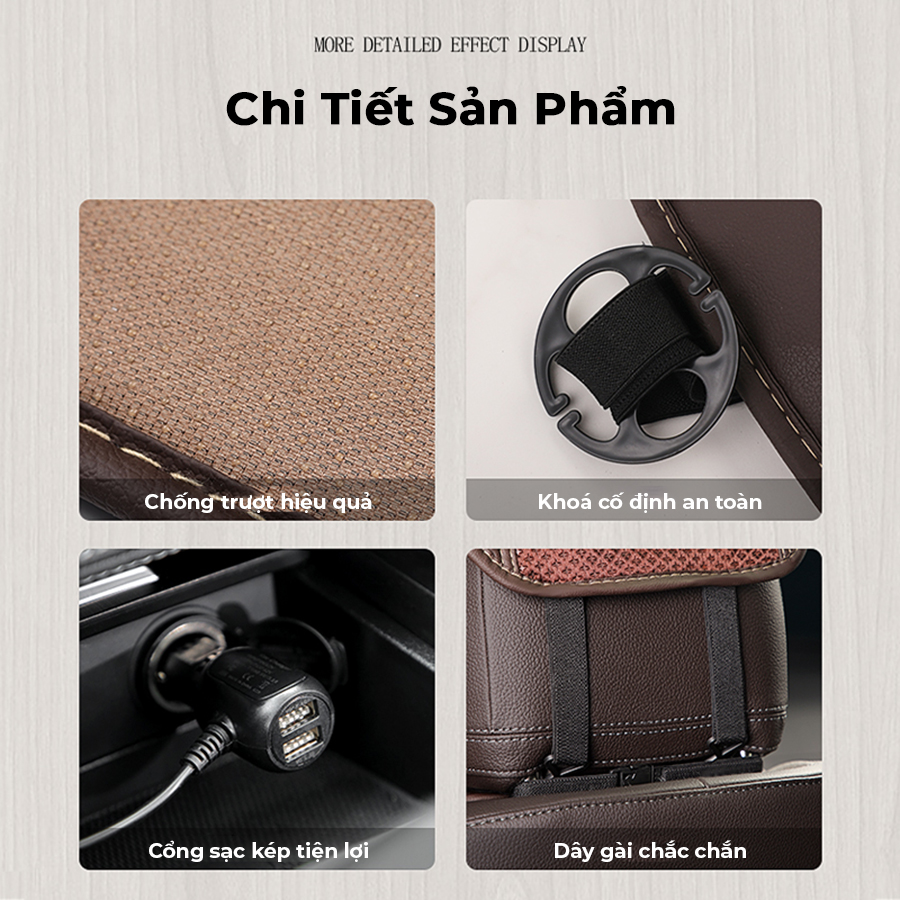 Lót Ghế Hạt Gỗ Massage 5 Chế Độ Thông Minh Kèm Quạt Đo Nhiệt Độ Môi Trường Tích Hợp 2 Cổng Chia USB CIND DZ002 với chất liệu cao cấp dùng được cho ô tô, xe khách, xe tải, đem đến cảm giác thoáng mát, thoải mái với chất liệu gỗ thoáng mát bền bỉ, sản phẩm được thiết kế vừa vặn theo dáng ghế, dây gài chắc chắn giúp cố định, hỗ trợ người dùng thoải mái khi ngồi lâu trên xe hoặc bác tài khi lái xe đường dài.