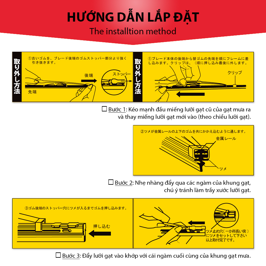 - Chỉ với vài bước lắp đặt đơn giản, việc trang bị gạt mưa cho xe sẽ cực kỳ nhanh chóng không tốn nhiều thời gian. Bạn có thể lắp đặt tại nhà một cách vô cùng dễ dàng.