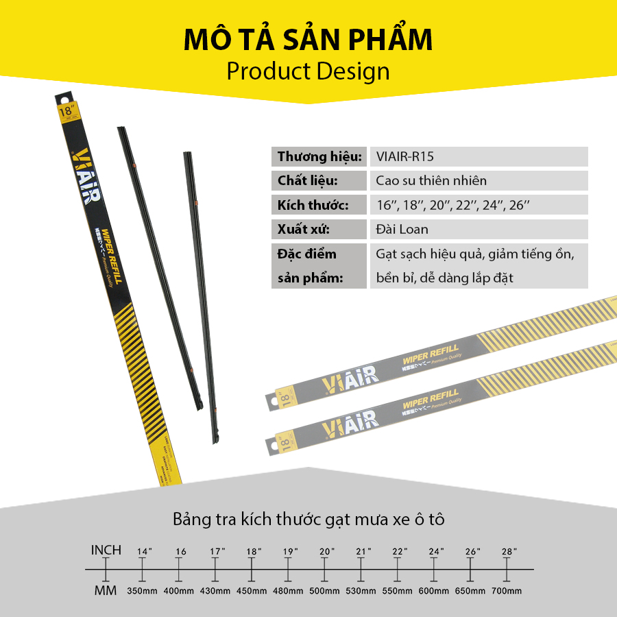 Giới thiệu Lưỡi gạt mưa loại A VIAIR R15 (26 inch/650 mm)
