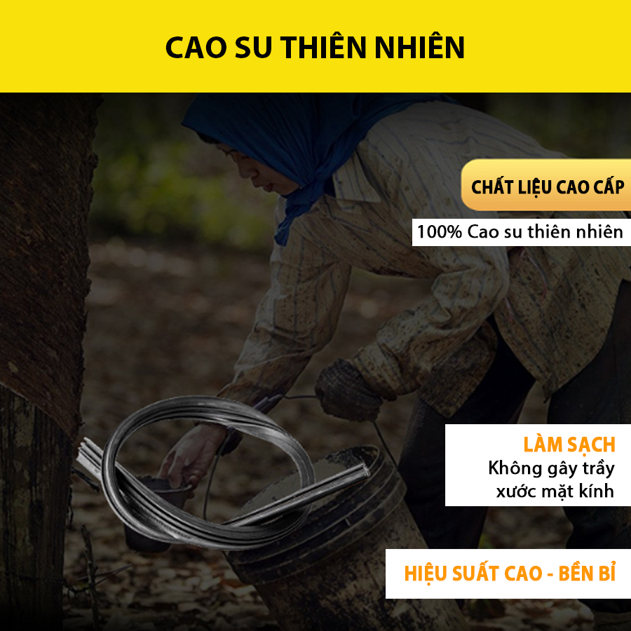 - Lưỡi gạt được làm từ 100% cao su thiên nhiên giúp làm sạch mà không gây trầy xước mặt kính.