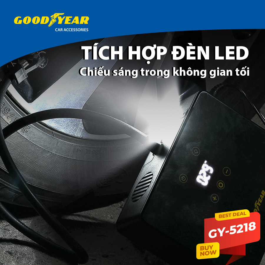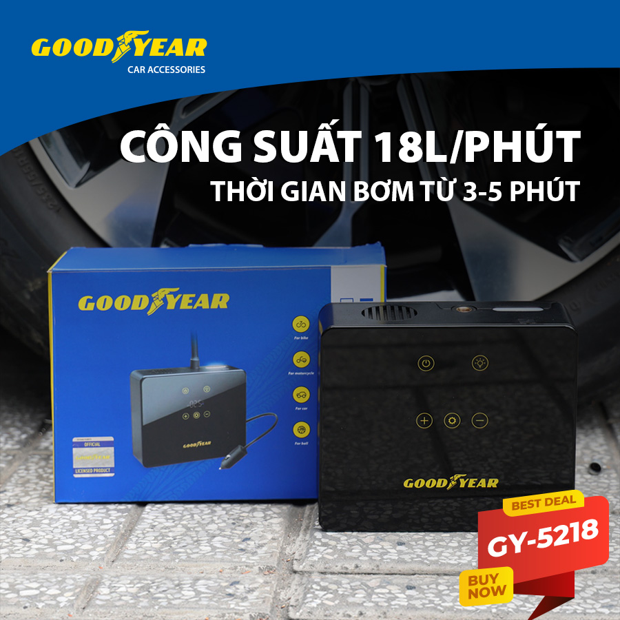 Máy Bơm Lốp Xe GOODYEAR GY-5218 Cảm Ứng Đa Điểm Tự Ngắt Thông Minh