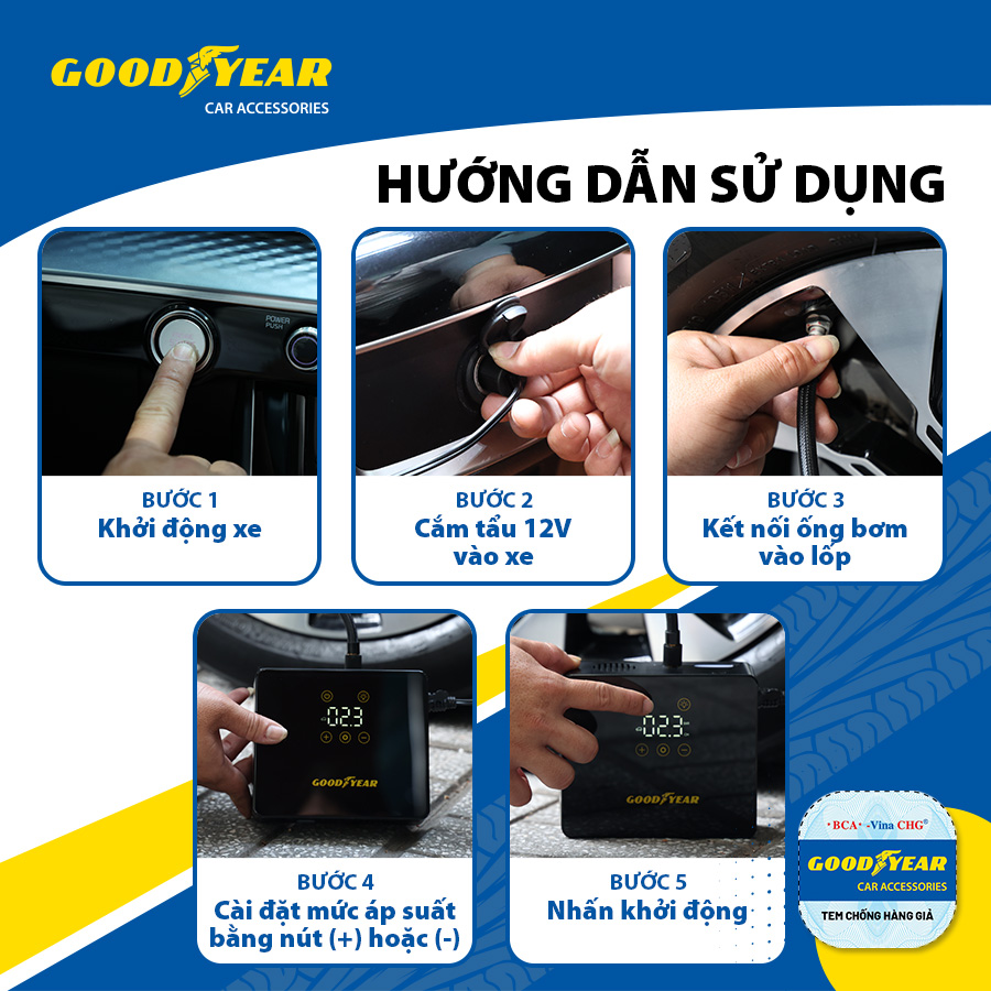 - Máy bơm hơi chính hãng thương hiệu nổi tiếng Goodyear