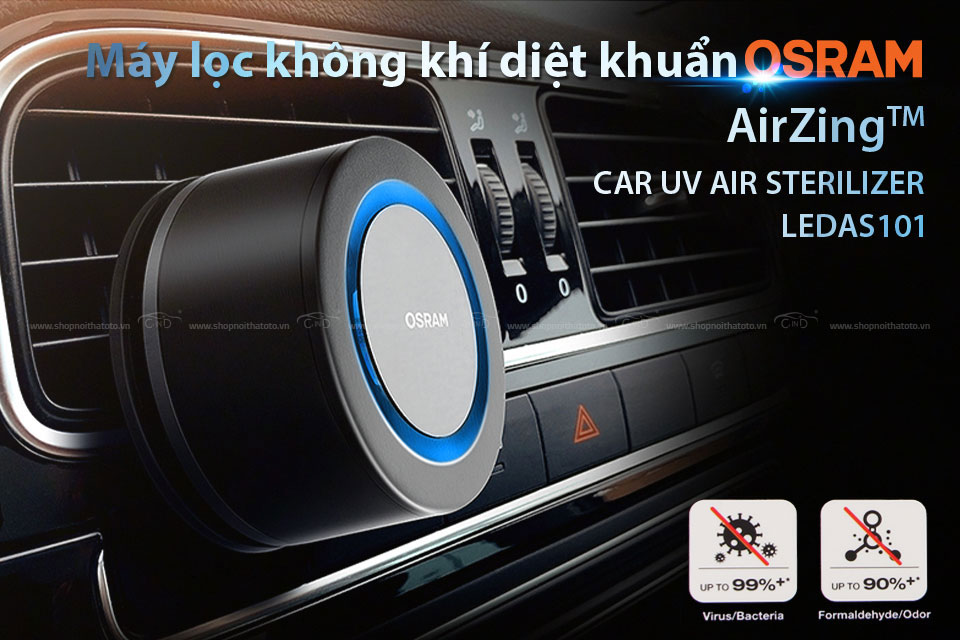 Máy lọc không khí diệt khuẩn OSRAM AirZing LEDAS101 là sản phẩm lọc khí cực kỳ hiệu quả với khả năng loại bỏ virus và vi khuẩn trên xe đến 99%, bộ lọc Titanium Dioxide với những đi-ốt phát quang và lọc than hoạt tính có thể khử mùi Formaldehyde đến 90%.