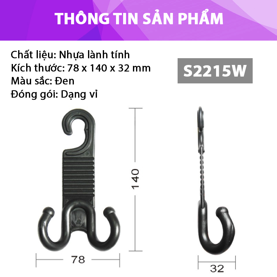 - Móc treo đa năng trên ô tô S2215W được làm từ chất liệu nhựa lành tính, không gây độc hại khi sử dụng.