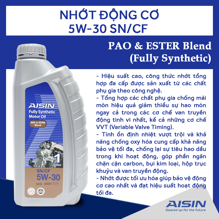 Nếu bạn mong muốn khắc phục tình trạng trên thì Nhớt động cơ AISIN ESEN0531P 5W-30 SN / CF PAO & ESTER Blend 1L chính là sự lựa chọn hoàn hảo của bạn!