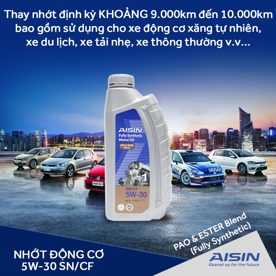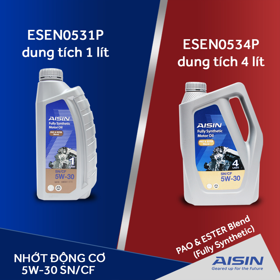 - - Nhớt động cơ AISIN ESEN0531P 5W-30 SN / CF PAO & ESTER Blend 1L là dầu nhớt tổng hợp hiệu suất cao, công thức nhớt tổng hợp đa cấp được sản xuất từ các chất phụ gia theo công nghệ sử dụng trong xe đua để phục vụ cho xe du lịch và xe tải nhẹ cho cả động cơ xăng và dầu hoạt động trong tất cả điều kiện.