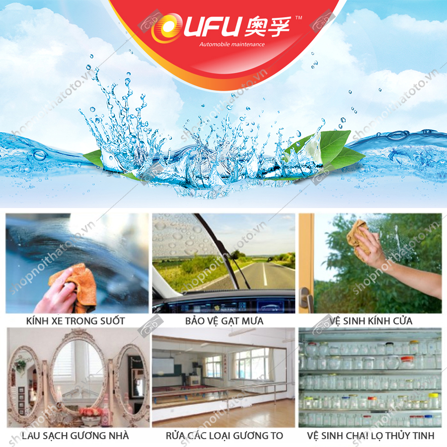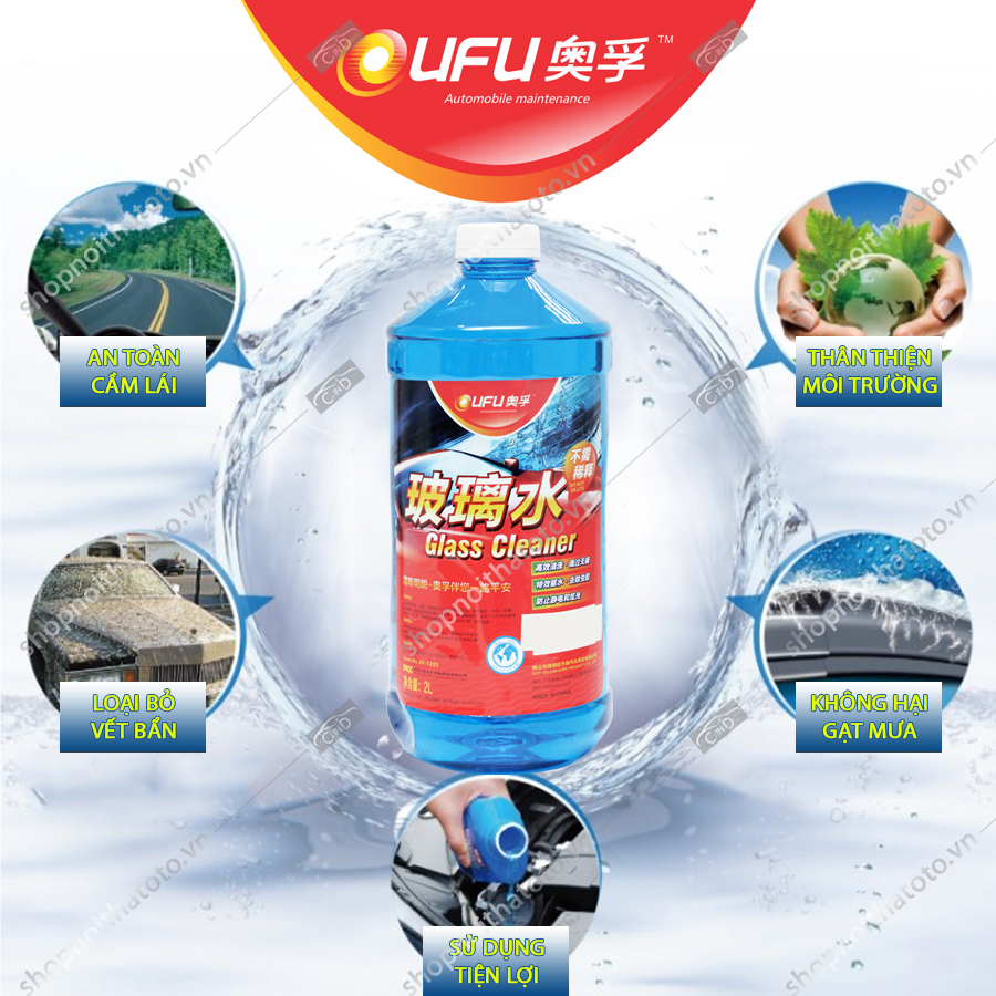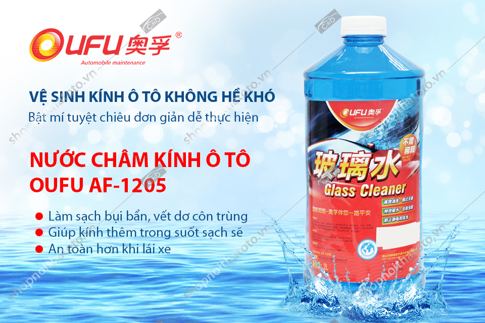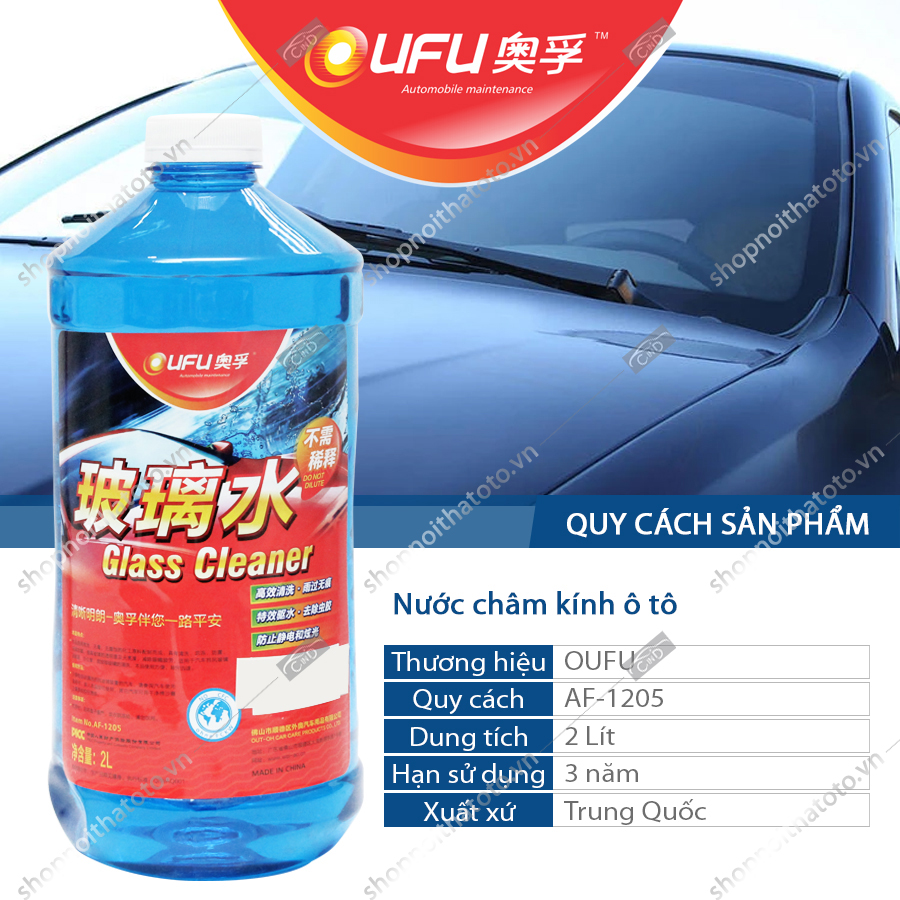 - Nước châm kính ô tô OUFU AF-1205 2L được chế tạo theo công nghệ tiên tiến và sử dụng nguyên liệu ngoại nhập pha chế, nhanh chóng tẩy sạch những vết dầu, bụi bẩn, vết ố nước mưa, vết dơ do dấu vân tay để lại trên kính