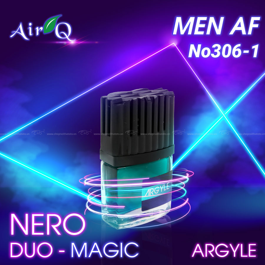 - Nước hoa ghim máy lạnh AIR-Q NERO DUO-MAGIC ARGYLE NO306-1 Men AF 9ml được chế tạo với công thức đặc biệt của các chuyên gia hàng đầu tại Đài Loan, hệt như tên gọi - sản phẩm sẽ mang đến mùi hương thần kỳ quý phái, dịu nhẹ giúp bạn thư giãn thoải mái, tăng khả năng tập trung khi tham gia giao thông. Ngoài ra, thiết kế sản phẩm chuyển sắc tạo cảm giác sinh động trong không gian xe. Với thành phần hoàn toàn lành tính, sản phẩm đảm bảo không gây nên bất cứ tác dụng phụ cũng như ảnh hưởng gì đến sức khỏe của bạn khi sử dụng.