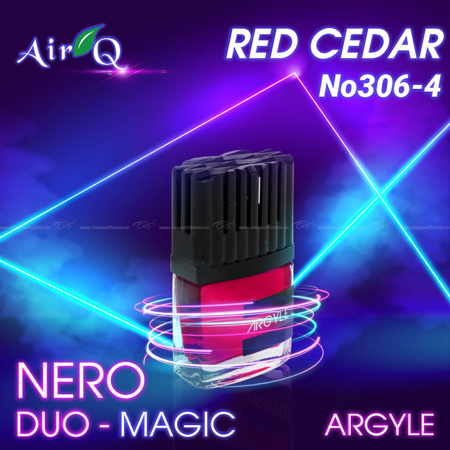 - Nước hoa ghim máy lạnh AIR-Q NERO DUO-MAGIC ARGYLE NO306-4 Red Cedar 9ml được chế tạo với công thức đặc biệt của các chuyên gia hàng đầu tại Đài Loan, hệt như tên gọi - sản phẩm sẽ mang đến mùi hương thần kỳ quý phái, dịu nhẹ giúp bạn thư giãn thoải mái, tăng khả năng tập trung khi tham gia giao thông. Ngoài ra, thiết kế sản phẩm chuyển sắc tạo cảm giác sinh động trong không gian xe. Với thành phần hoàn toàn lành tính, sản phẩm đảm bảo không gây nên bất cứ tác dụng phụ cũng như ảnh hưởng gì đến sức khỏe của bạn khi sử dụng.