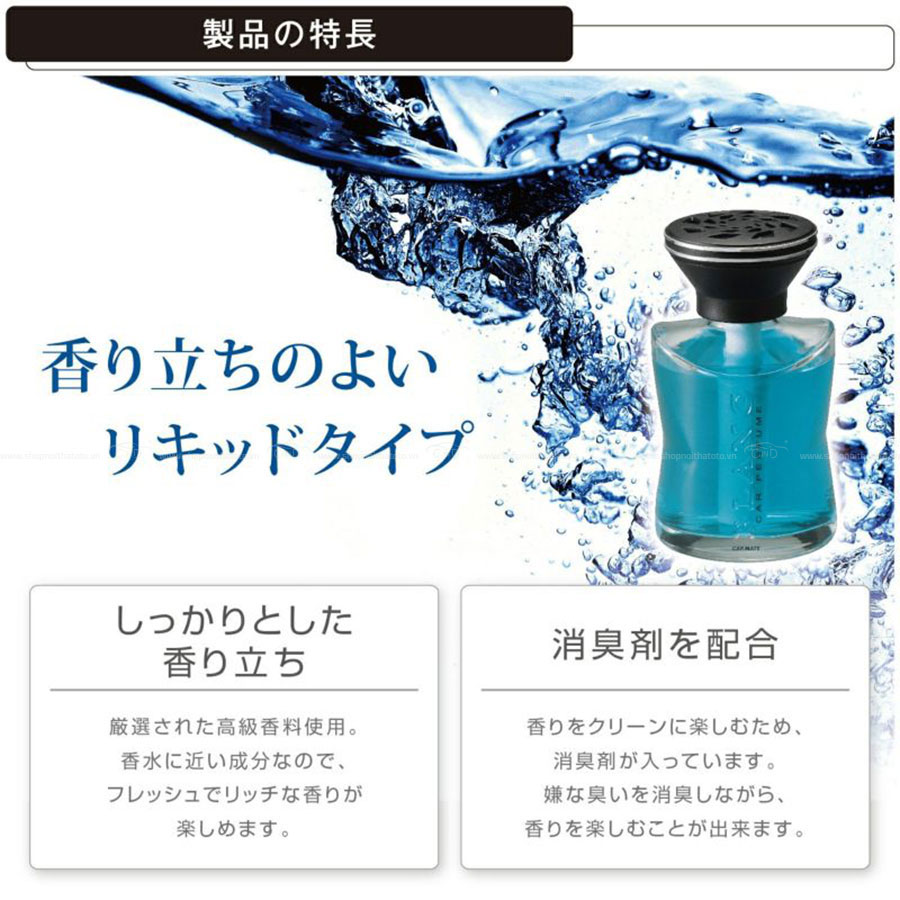 - Nước hoa ô tô CARMATE BLANG POWER LIQUID C L737 Shine Blue 165ml ra đời bằng sự nghiên cứu tỉ mỉ của những chuyên gia về nước hoa người Nhật. Sản phẩm mang hương thơm tự nhiên, dịu nhẹ giúp bạn thư giãn thoải mái, tăng khả năng tập trung khi tham gia giao thông. Những mùi hôi, ẩm mốc trong xe sẽ không còn nữa mà thay vào đó là không gian sạch sẽ và thoáng mát. Mùi hương nước hoa lan tỏa hiệu quả và giữ lâu hơn khi sử dụng.