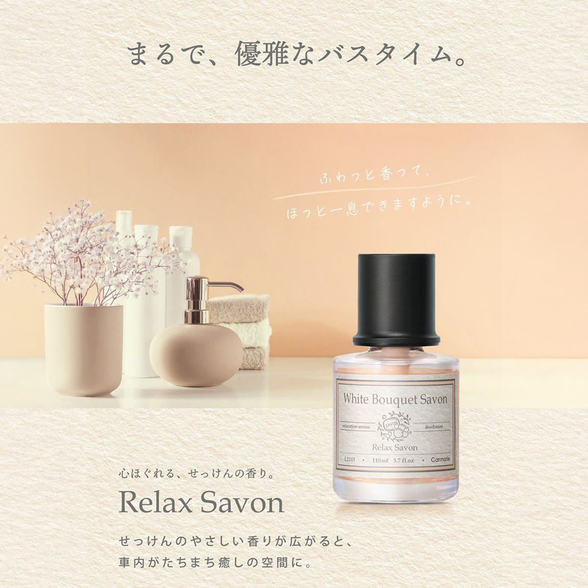 CARMATE Relax Savon L2103 mang đến hương White Bouquet Savon – mùi xà phòng sạch mát kết hợp hương hoa trắng tinh tế. Hương thơm nhẹ, thanh khiết, tạo cảm giác tươi mới ngay khi mở cửa xe. Dòng sản phẩm Relax Savon của Nhật Bản luôn nổi bật nhờ tinh dầu chất lượng cao, không gắt, phù hợp người dùng thích mùi “sạch – dịu – thư thái”.