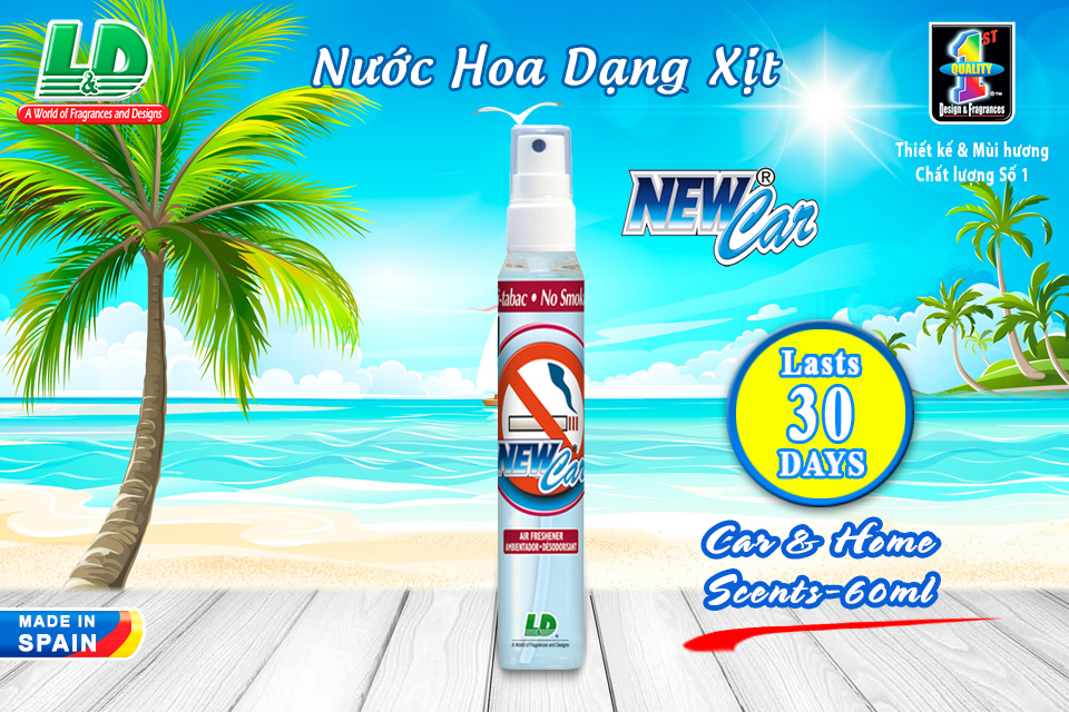 - Nước hoa ô tô dạng xịt L&D NEW CAR No Smoking là kết tinh quá trình nghiên cứu của những chuyên gia nước hoa hàng đầu của Tây Ban Nha giúp nhanh chóng khử sạch mùi hôi trong xe, giữ cho không khí trong xe luôn sạch sẽ và thoáng mát. Thiết kế gọn nhẹ và tiện lợi dễ dàng mang đi, không tốn diện tích xe. Với thành phần hoàn toàn lành tính, sản phẩm đảm bảo không gây nên bất cứ tác dụng phụ cũng như ảnh hưởng gì đến sức khỏe của bạn khi sử dụng.