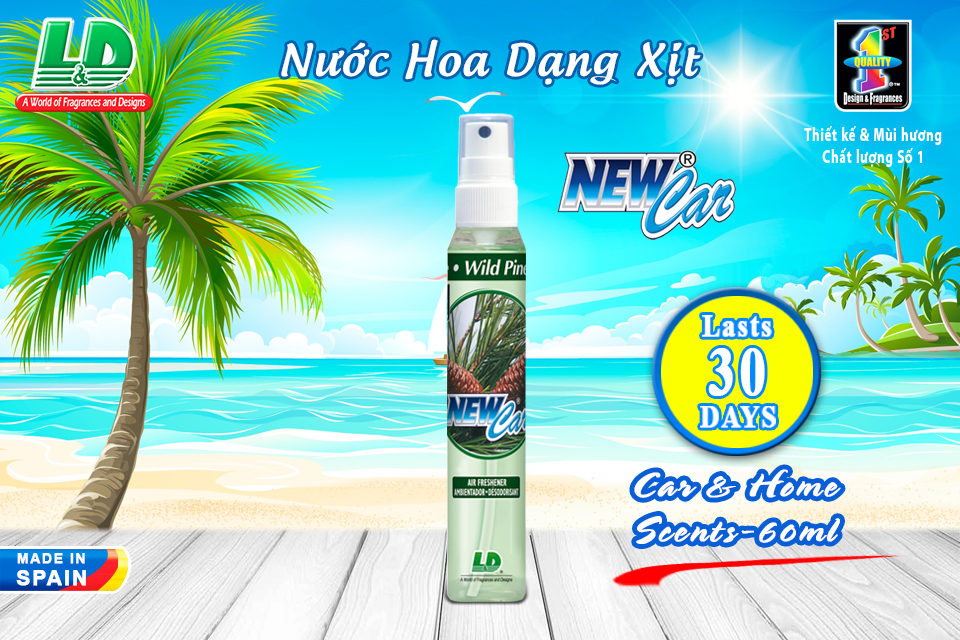 - Nước hoa ô tô dạng xịt L&D NEW CAR Wind Pine là kết tinh quá trình nghiên cứu của những chuyên gia nước hoa hàng đầu của Tây Ban Nha giúp nhanh chóng khử sạch mùi hôi trong xe, giữ cho không khí trong xe luôn sạch sẽ và thoáng mát. Thiết kế gọn nhẹ và tiện lợi dễ dàng mang đi, không tốn diện tích xe. Với thành phần hoàn toàn lành tính, sản phẩm đảm bảo không gây nên bất cứ tác dụng phụ cũng như ảnh hưởng gì đến sức khỏe của bạn khi sử dụng.