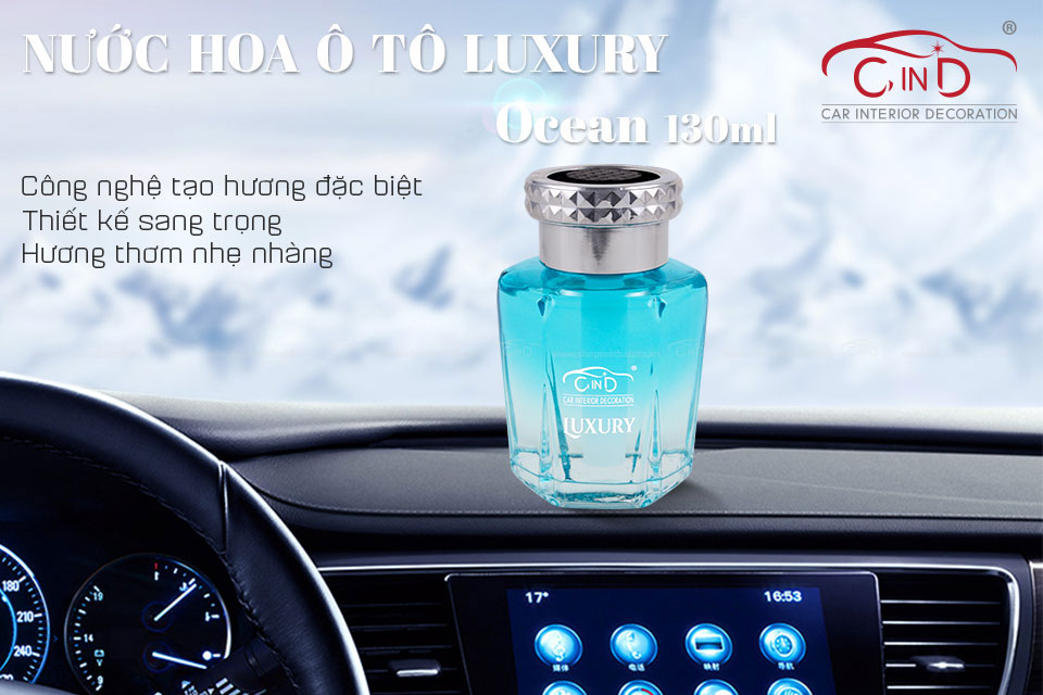 - Nước hoa ô tô LUXURY CIND-3072 Ocean 130ml ra đời bằng sự nghiên cứu tỉ mỉ của những chuyên gia về nước hoa. Sản phẩm mang hương thơm tự nhiên, dịu nhẹ giúp bạn thư giãn thoải mái, tăng khả năng tập trung khi tham gia giao thông. Những mùi hôi, khói thuốc trong xe sẽ không còn nữa mà thay vào đó là không gian sạch sẽ và thoáng mát. Mùi hương nước hoa lan tỏa hiệu quả và giữ lâu hơn khi sử dụng.