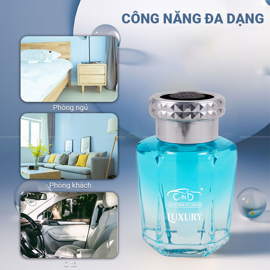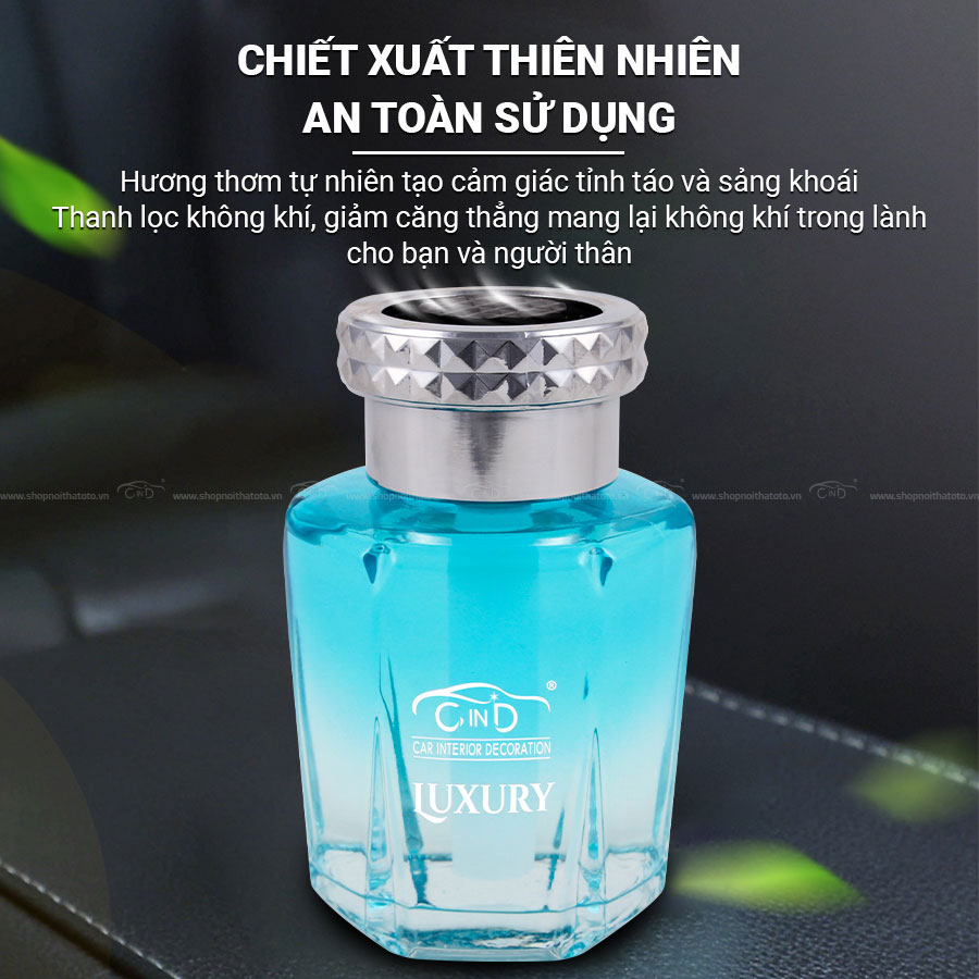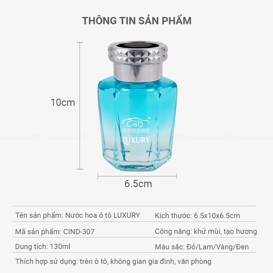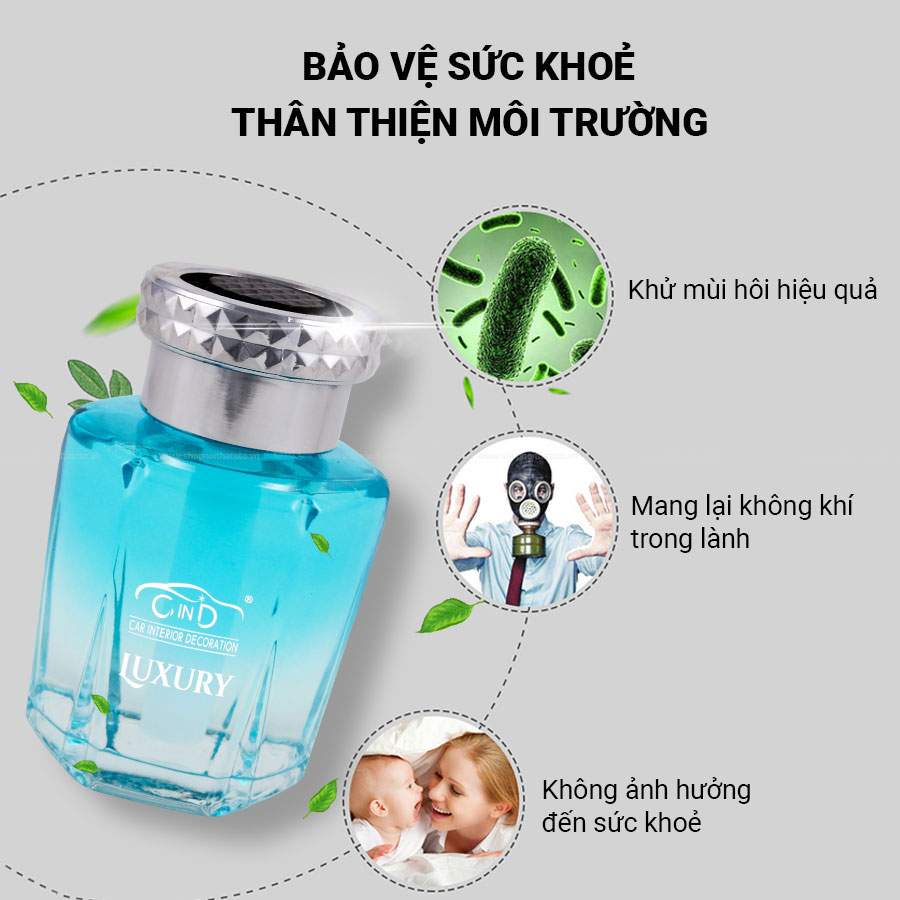 - Nước hoa ô tô LUXURY CIND-3072 Ocean 130ml giúp cải thiện không khí trong xe: khử sạch mùi hôi và nấm mốc trong xe một cách hiệu quả.