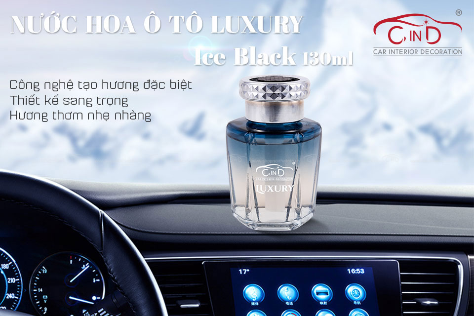 - Nước hoa ô tô LUXURY CIND-3074 Ice Black 130ml ra đời bằng sự nghiên cứu tỉ mỉ của những chuyên gia về nước hoa. Sản phẩm mang hương thơm tự nhiên, dịu nhẹ giúp bạn thư giãn thoải mái, tăng khả năng tập trung khi tham gia giao thông. Những mùi hôi, khói thuốc trong xe sẽ không còn nữa mà thay vào đó là không gian sạch sẽ và thoáng mát. Mùi hương nước hoa lan tỏa hiệu quả và giữ lâu hơn khi sử dụng.