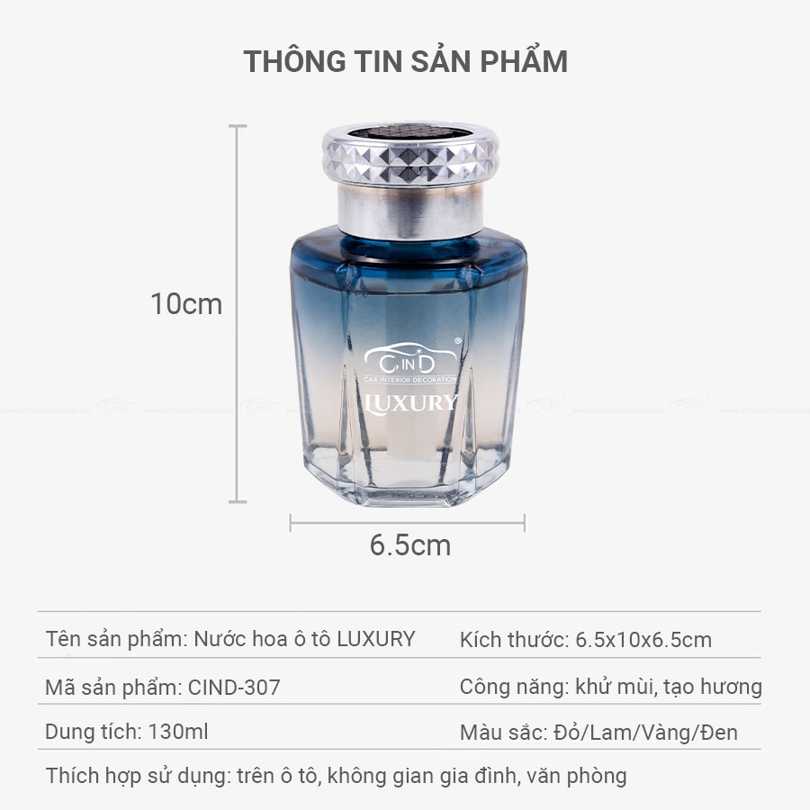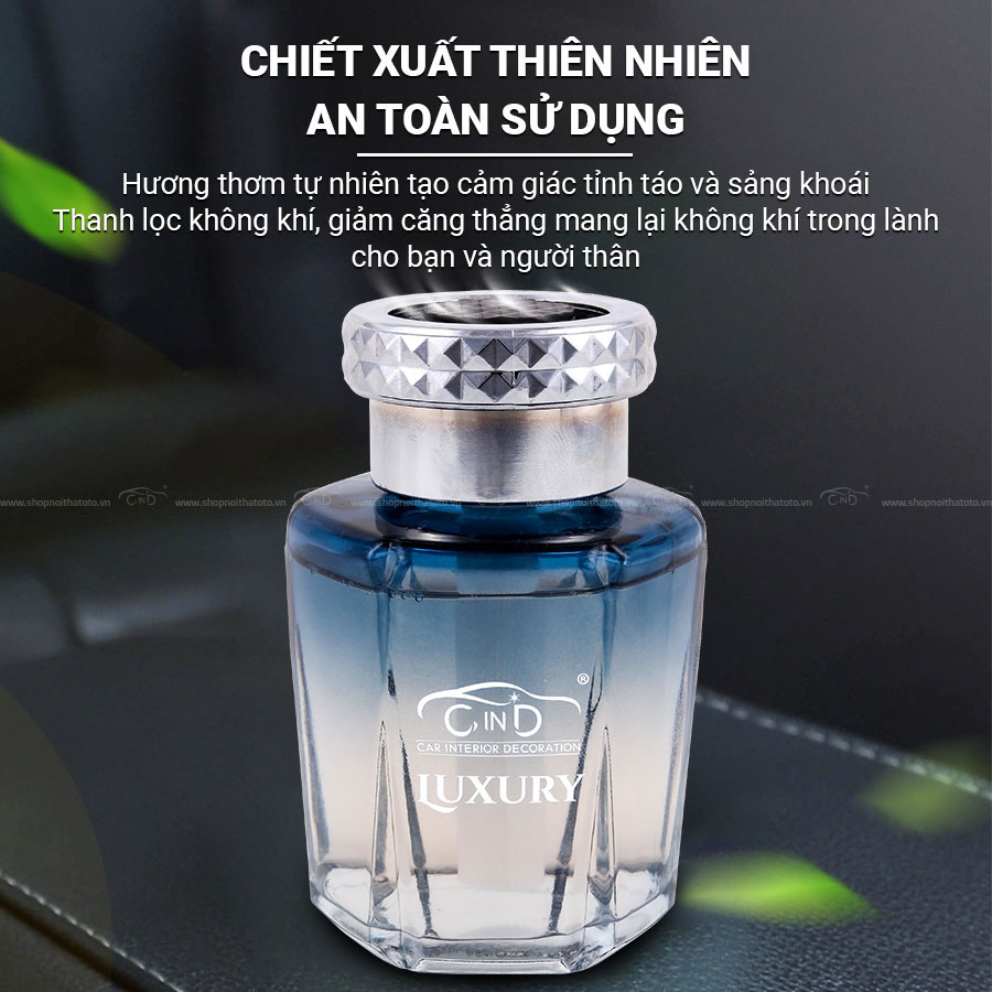 - Kiểu dáng sang trọng và đẳng cấp của nước hoa sẽ làm không gian nội thất xe bạn càng quý phái.