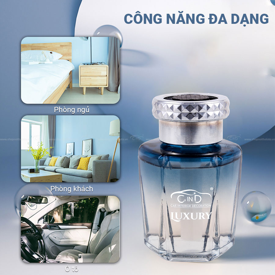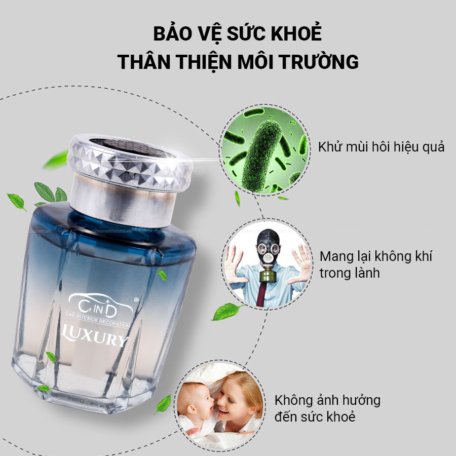 - Nước hoa ô tô LUXURY CIND-3074 Ice Black 130ml giúp cải thiện không khí trong xe: khử sạch mùi hôi và nấm mốc trong xe một cách hiệu quả.