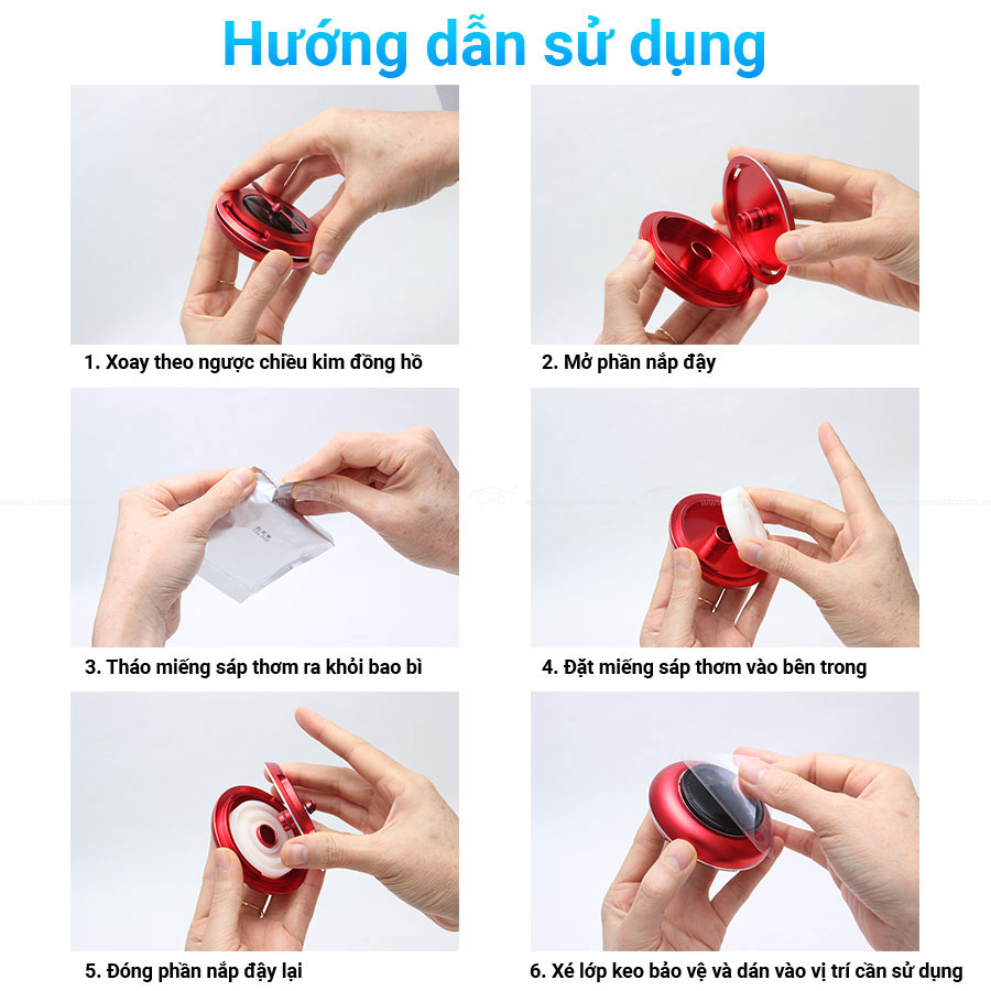 - Hướng dẫn sử dụng: Mở nắp và tháo bỏ nắp nhựa bên trong, cho sáp thơm vào đậy nắp lại và đặt sản phẩm đến vị trí cần đặt.