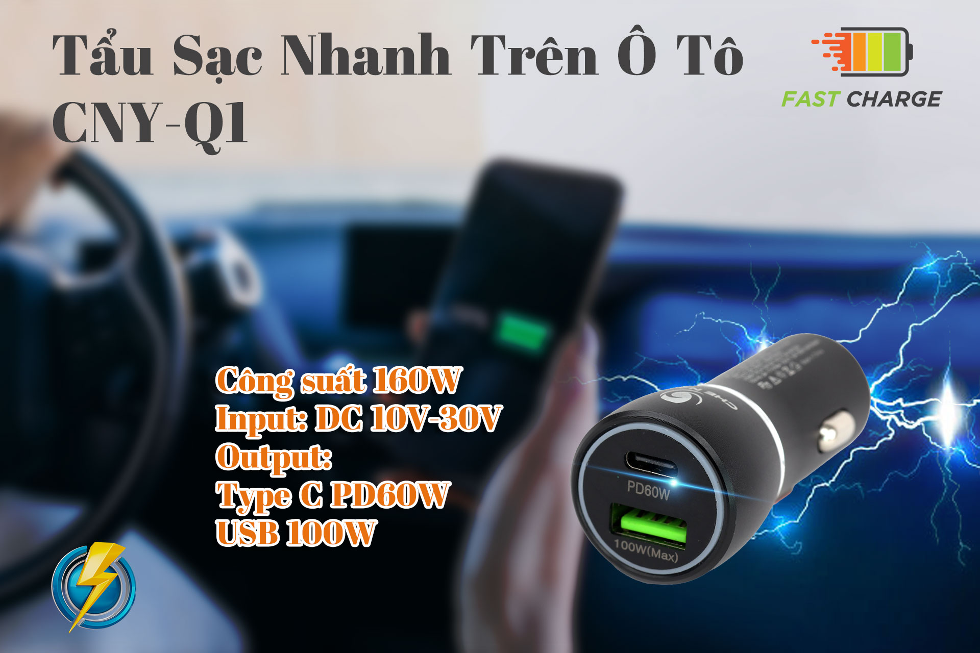 - Tẩu Sạc Nhanh Trên Ô Tô 1 Cổng USB 100W 1 Cổng Type C PD60W 160W CIND CNY-Q1 được thiết kế với chất liệu an toàn, trang bị tính năng bảo vệ quá dòng, quá áp, cóc sạc giúp rút ngắn thời gian sạc và đảm bảo an toàn cho các thiết bị cùng cả hệ thống điên trên xe.