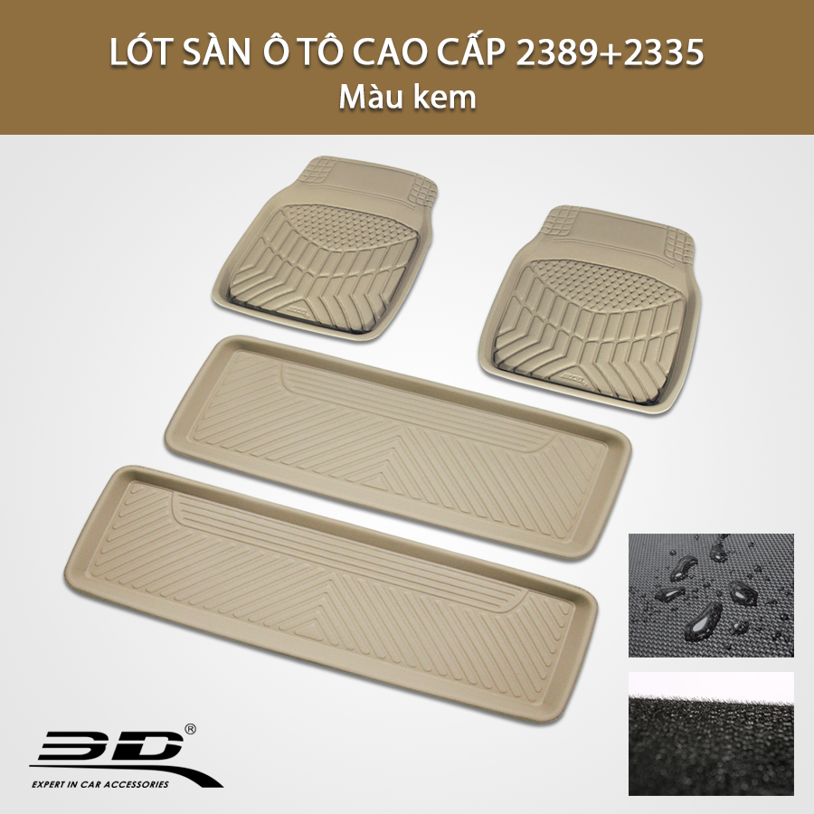 Thảm lót sàn ô tô chống trượt 3D 2389- 2335 size M- 2335 size L màu kem 7 chỗ tạo ra từ hàng ngàn sợi maxpider có khả năng hãm phanh chặt, ngăn chặn thảm trượt và gây tắc nghẽn tăng tốc đảm bảo an toàn khi lái xe.