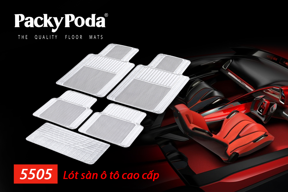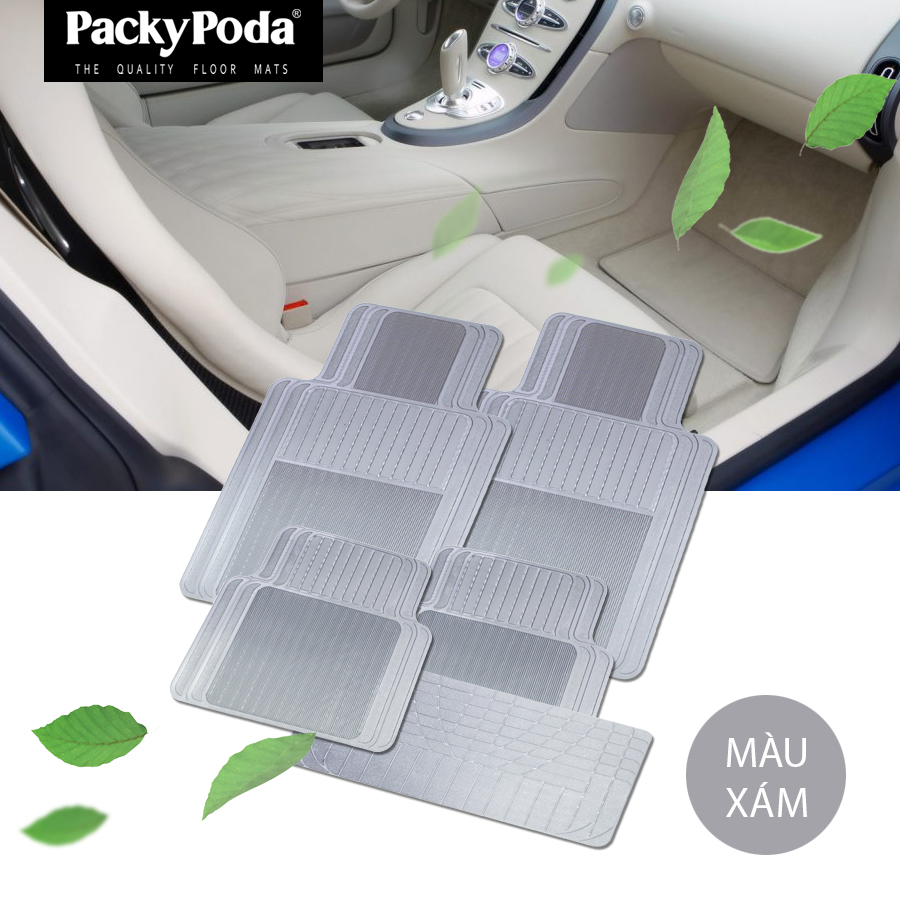 - Thảm lót sàn ô tô PACKY PODA 5505 màu xám 4 chỗ là sản phẩm làm từ 100% PVC dễ dàng chùi rửa vệ sinh.