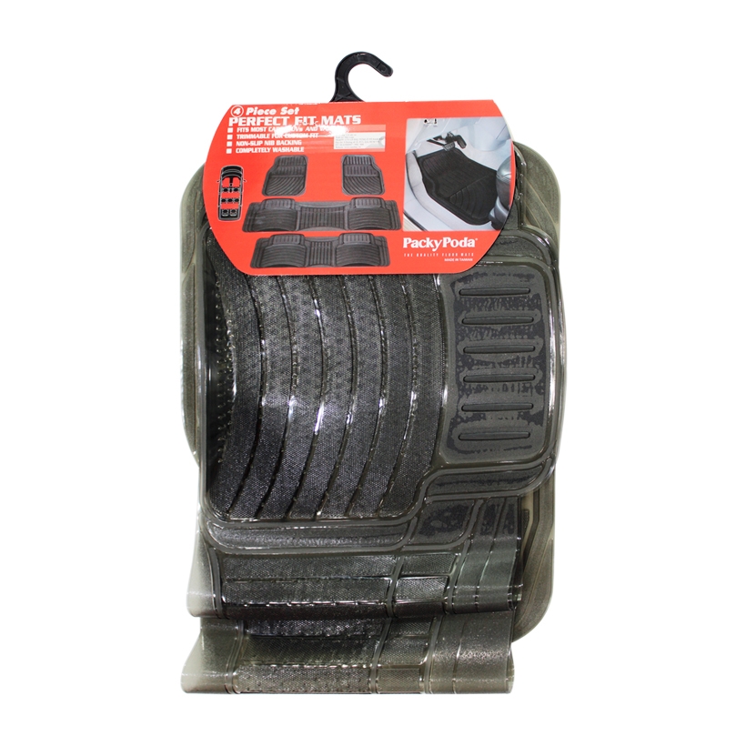 Thảm lót sàn ô tô PACKY PODA 6168 màu đen 7 chỗ với cấu tạo từ 100% nhựa PVC cùng thiết kế đường vân trên bề mặt giúp chống trượt hiệu quả trên xe, dễ dàng chùi rửa vệ sinh khỏi những vết bẩn đồng thời không để lại mùi hôi hay khó chịu.