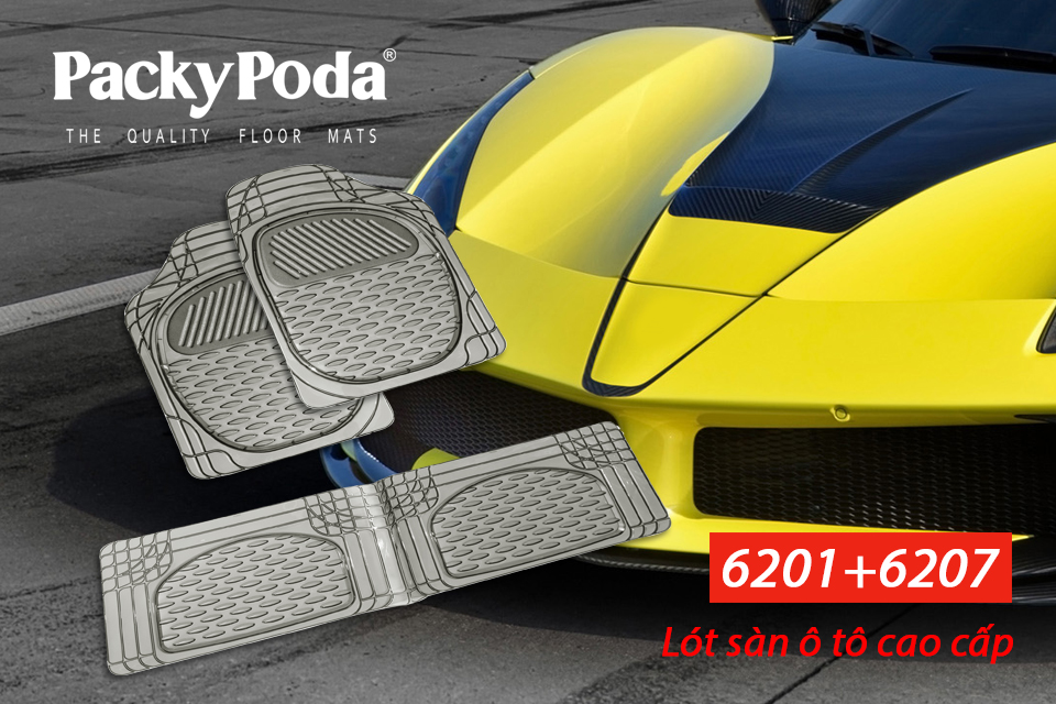 - Thảm lót sàn ô tô PACKY PODA 6201-6207 màu đen 4 chỗ là sản phẩm làm từ 100% PVC dễ dàng chùi rửa vệ sinh.