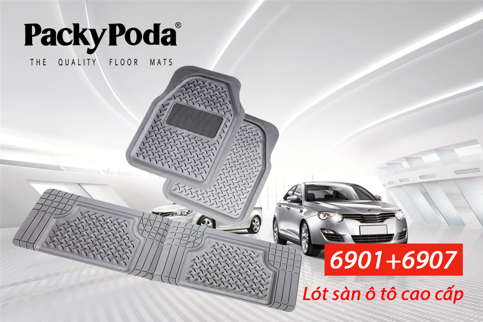 - Thảm lót sàn ô tô PACKY PODA 6901-6907 màu xám 4 chỗ là sản phẩm làm từ 100% PVC dễ dàng chùi rửa vệ sinh.