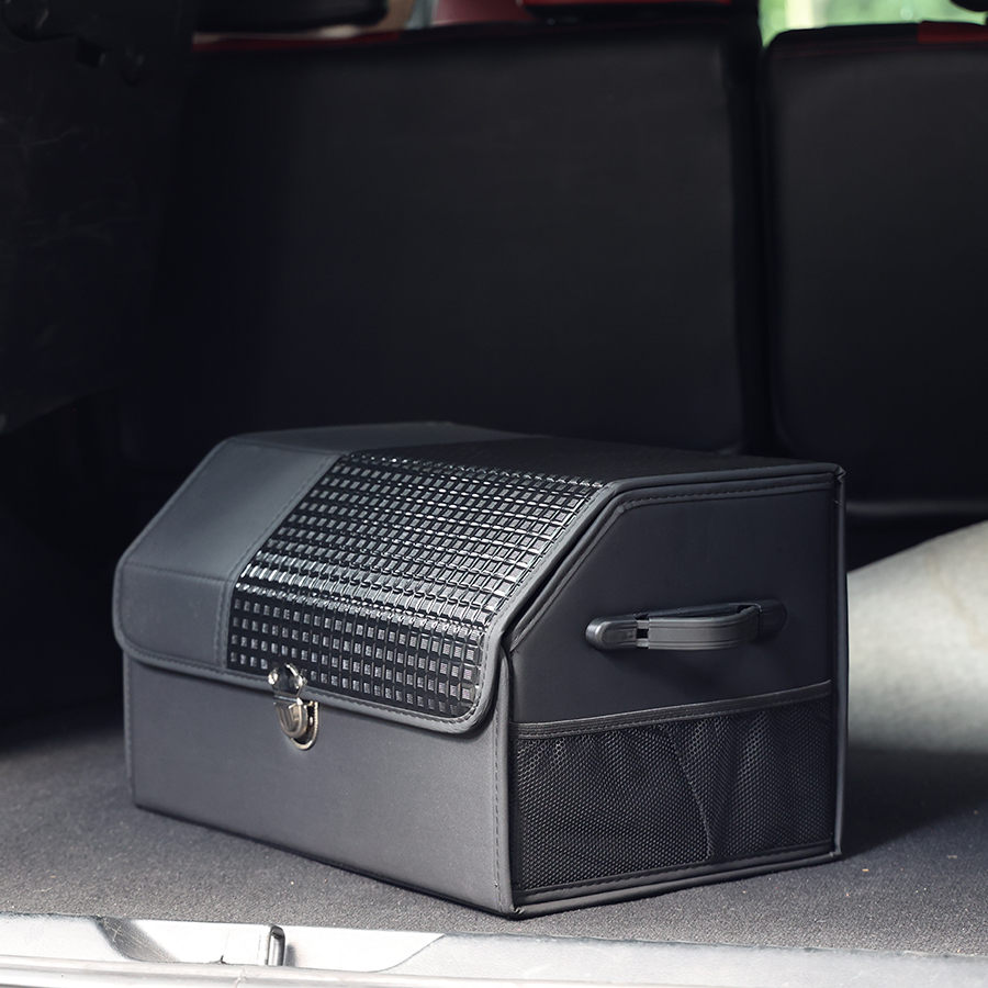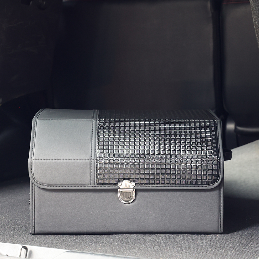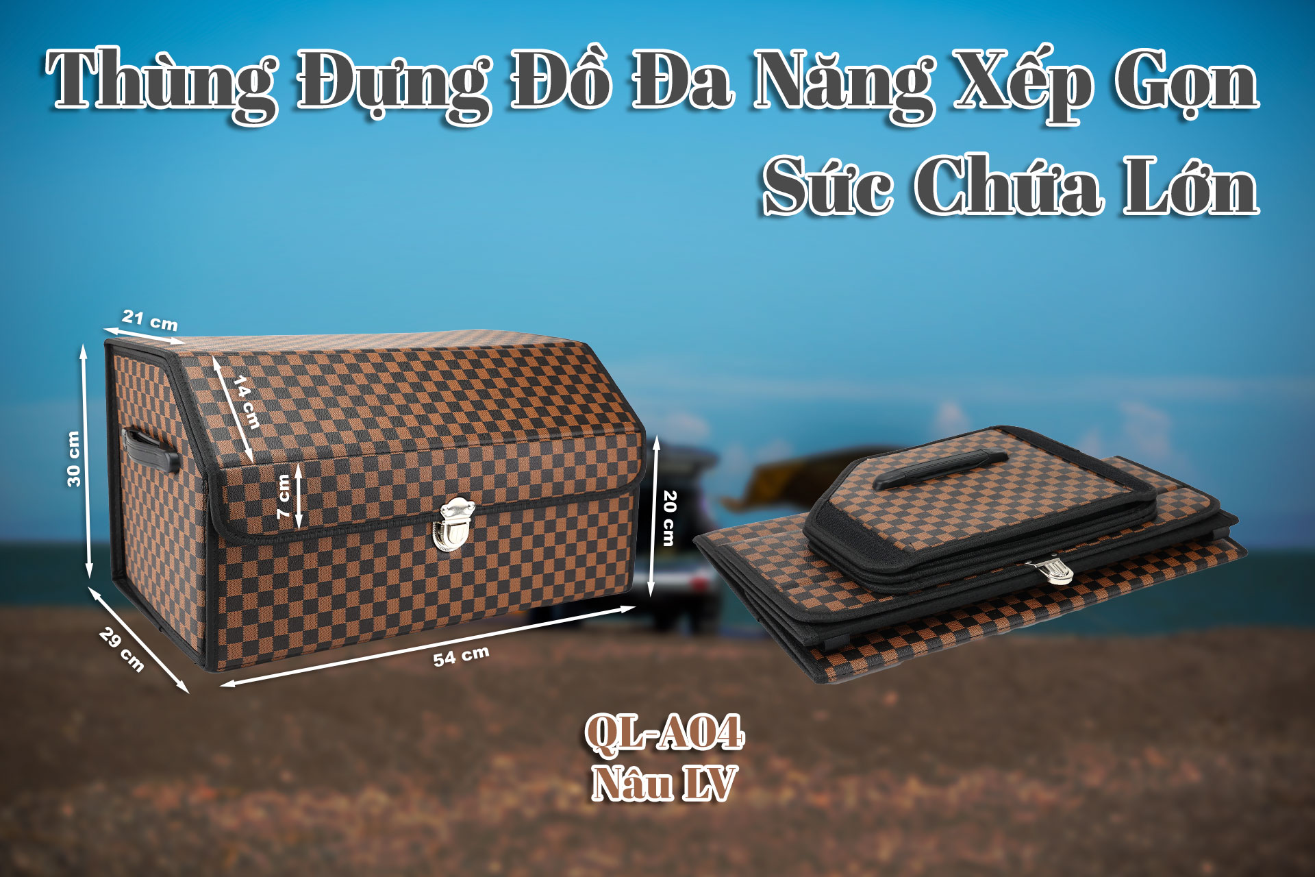 - Thùng Đựng Đồ Đa Năng Cốp Sau Ô Tô Bọc Da Cao Cấp Có Nắp Gấp Gọn Gàng Chứa Được Nhiều Đồ được làm từ chất liệu da PU sang trọng lại dễ dàng lau chùi và vệ sinh.