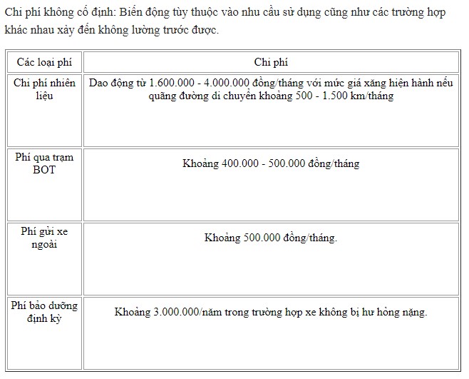 👉Trung bình, chi phí nuôi xe nằm ở mức 3.700.000 - 7.000.000 đồng/tháng.