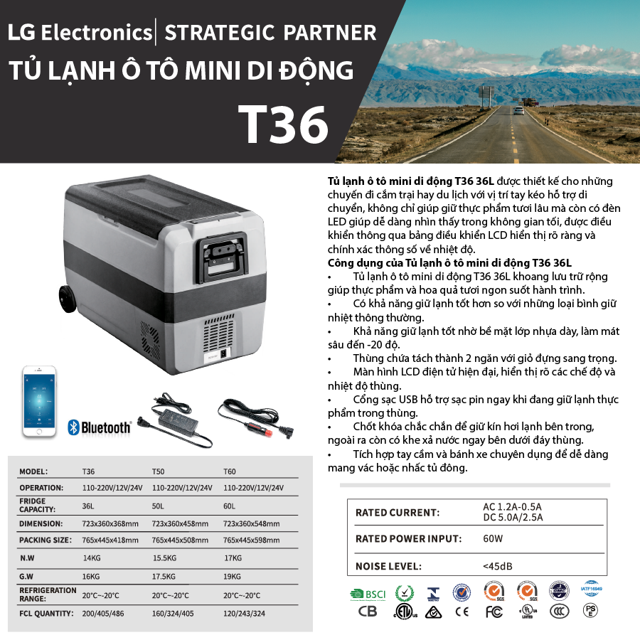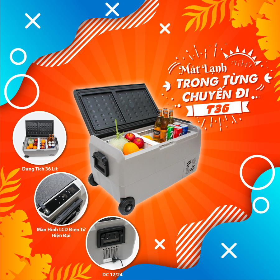 - Tủ lạnh ô tô mini di động T36 36L với thiết kế chuyên dụng cho những chuyến đi xa, sử dụng bảng điều khiển điện tử giúp điều chỉnh nhiệt độ như một tủ đông hiện đại, đèn LED sang trọng vừa làm đẹp không gian vừa hỗ trợ nhìn tốt hơn trong không gian tối, giúp bạn lưu trữ tươi ngon những thực phẩm trong suốt cuộc hành trình.