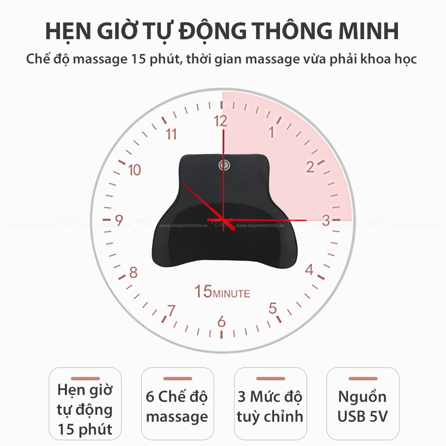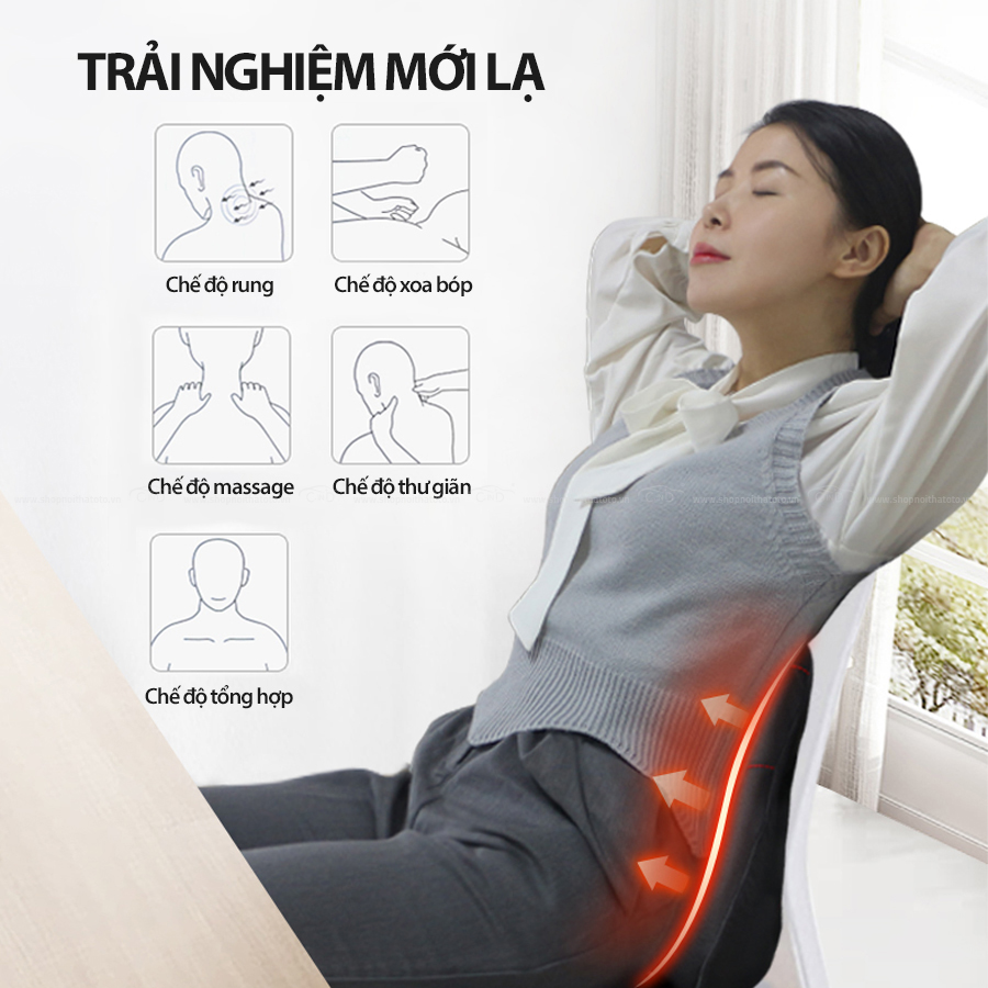 - Hướng dẫn sử dụng: dùng tựa lưng và massage khi ngồi trên xe.