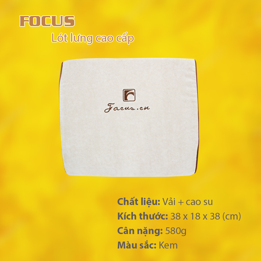 - Chất liệu Tựa lưng ô tô cao cấp FOCUS F-YM01A màu kem: Vải nhung, cao su thiên nhiên.