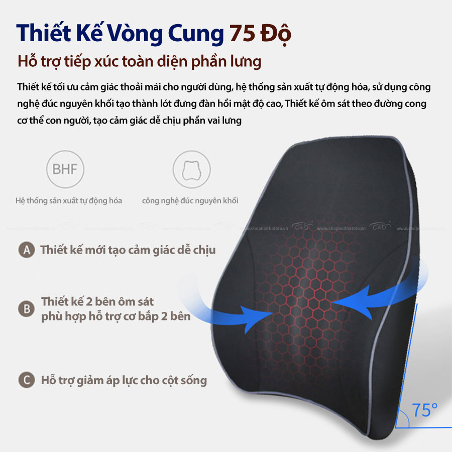 - Hạn chế hiệu quả tình trạng đau nhức, mỏi cơ khi phải ngồi lâu trong xe, nhờ đó giúp người dùng tập trung, thoải mái hơn trong việc lái xe.