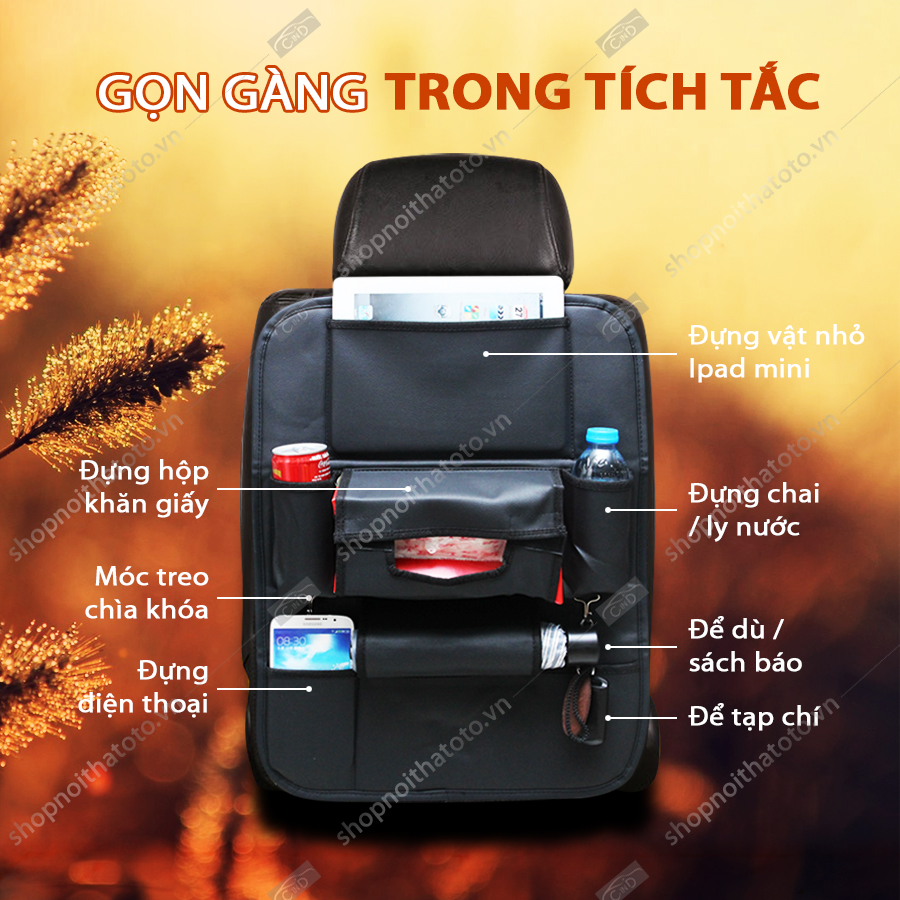 - Túi đựng đồ chất liệu da PU sang trọng tôn lên nội thất không gian xe.