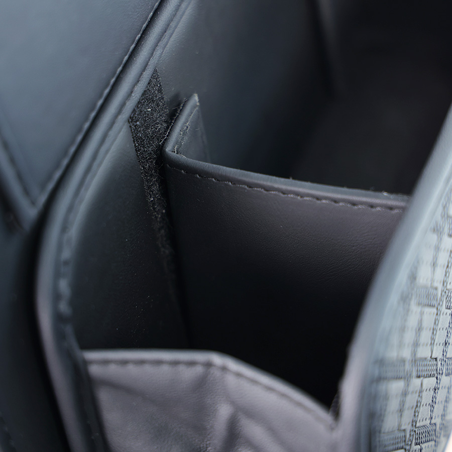 Túi có ngăn lớn phía trên để tài liệu hoặc đồ cá nhân, ngăn giữa tích hợp hộp khăn giấy tiện lợi và ngăn dưới rộng giúp để thêm đồ nhỏ gọn. Bố cục khoa học giúp dễ lấy – dễ cất.